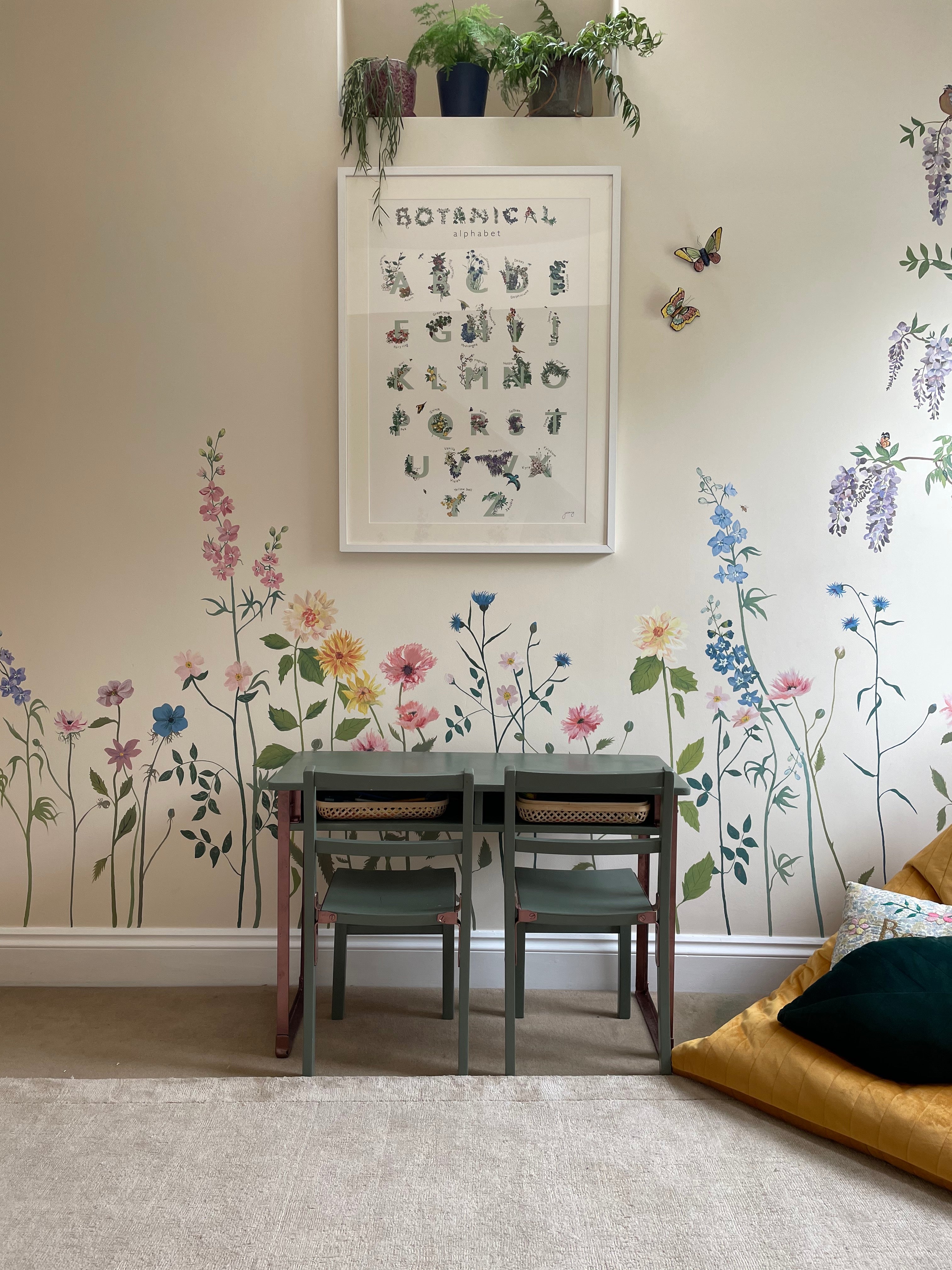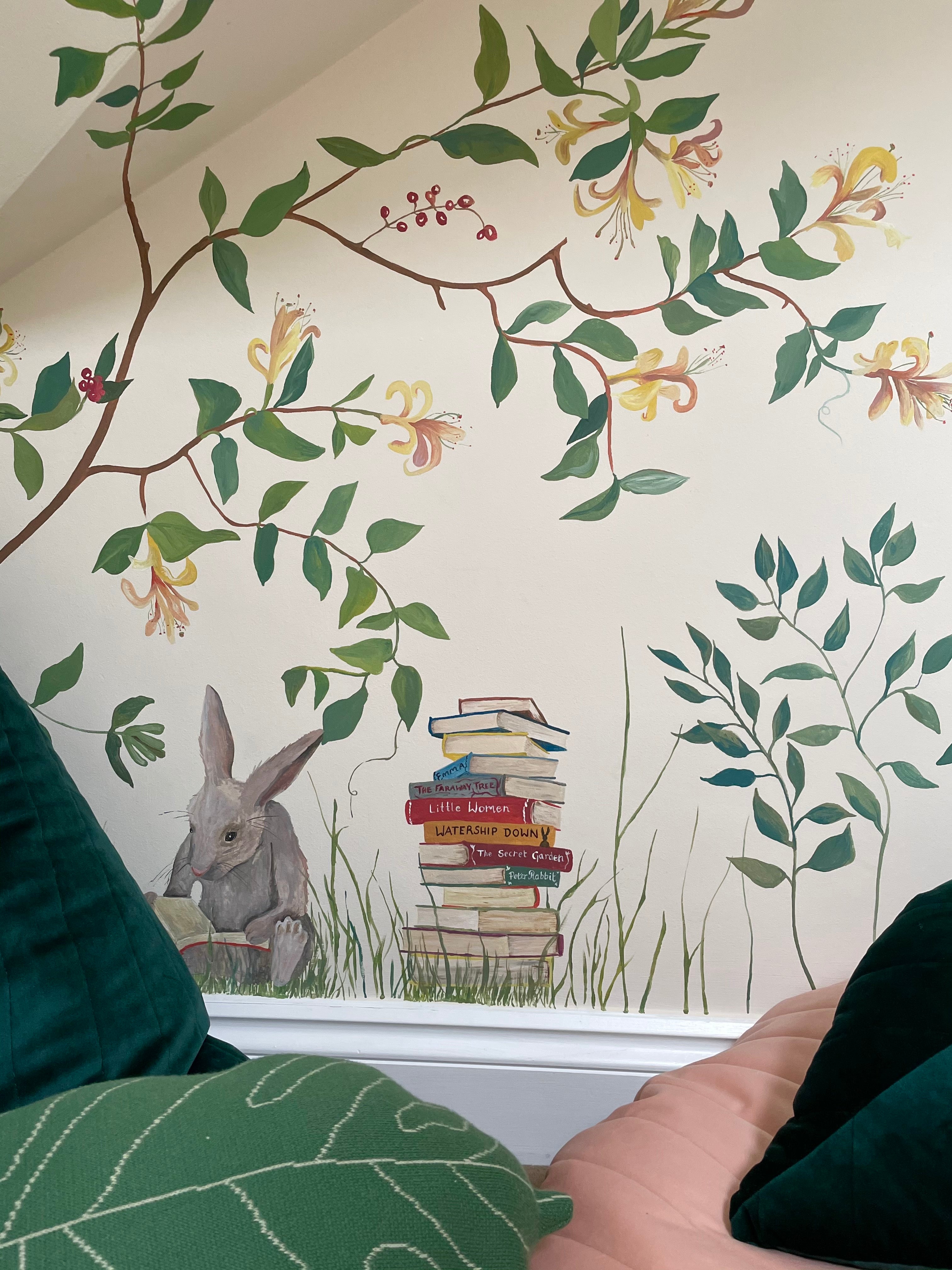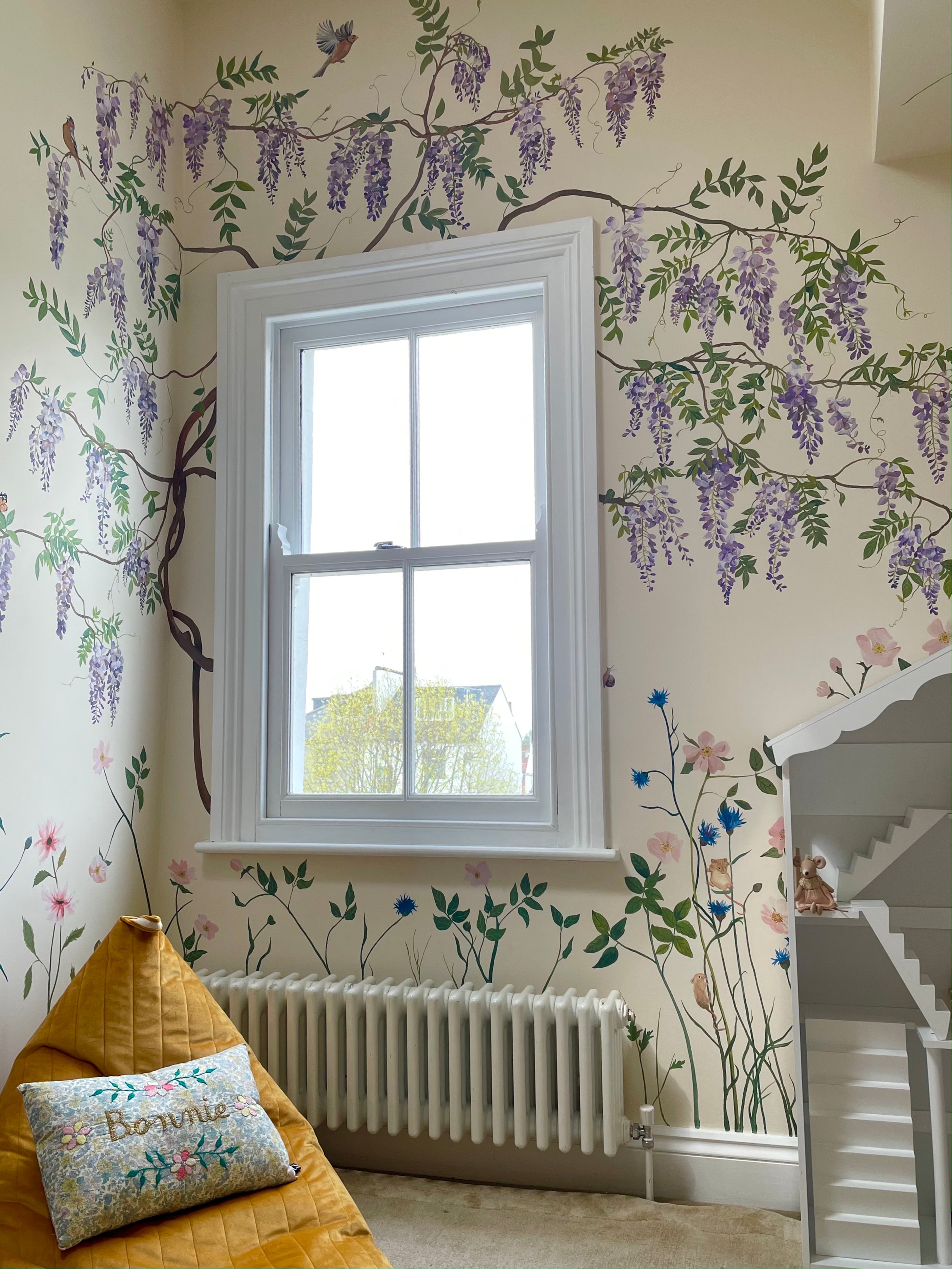 A personal project - this Secret Garden Mural was commissioned by Jo's young twin daughters. They requested a magical playroom with the sense that the garden and wildlife had crept inside.