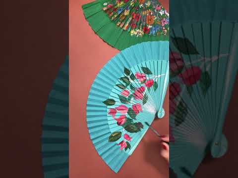 This beautiful birchwood fan has been handcrafted in Valencia by local Spanish artisans, providing the perfect canvas for the bold floral artwork.